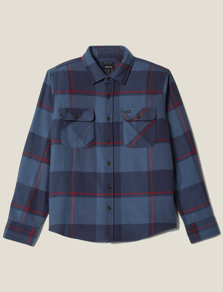 From the backyard to the backcountry, the Bowery Stretch Flannel is designed for discovery. It’s made with brixton's signature scratch-free flannel that we’ve infused with stretch for added mobility. To make it a superior overshirt, it’s finished with a DWR coating that keeps the elements out and the warmth in. Finished with clean seams and dual flap chest pockets.