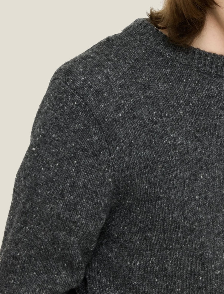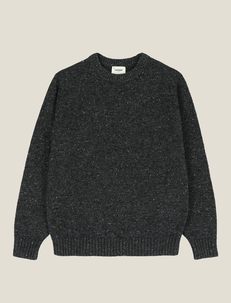 The CASTART speckled wool yarn knitwear. A ‘not so basic’ essential piece with slightly longer ribbed cuffs and a bold crewneck to style every outfit.