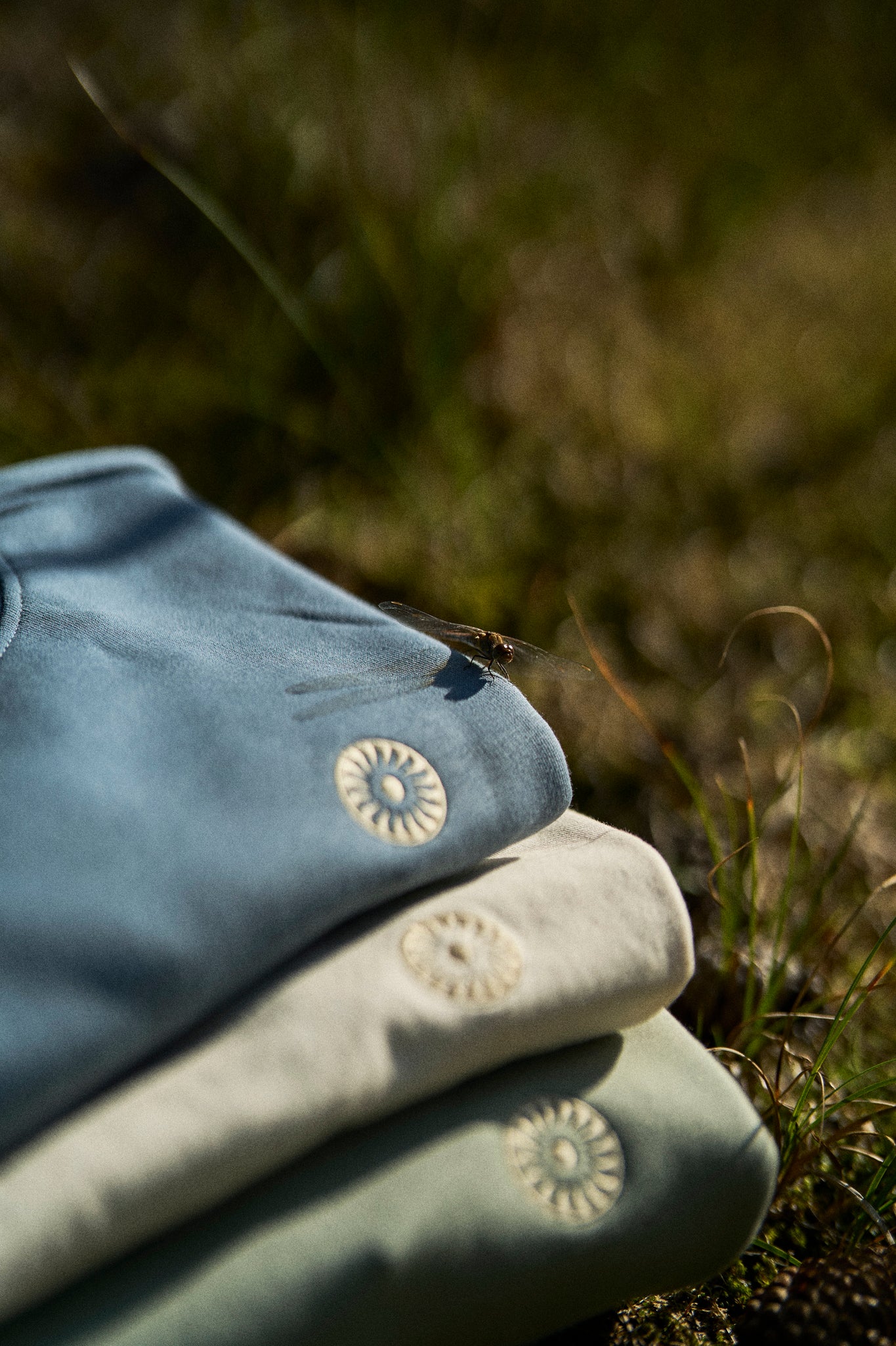 - 85% organic cotton, 15% post-consumer recycled polyester