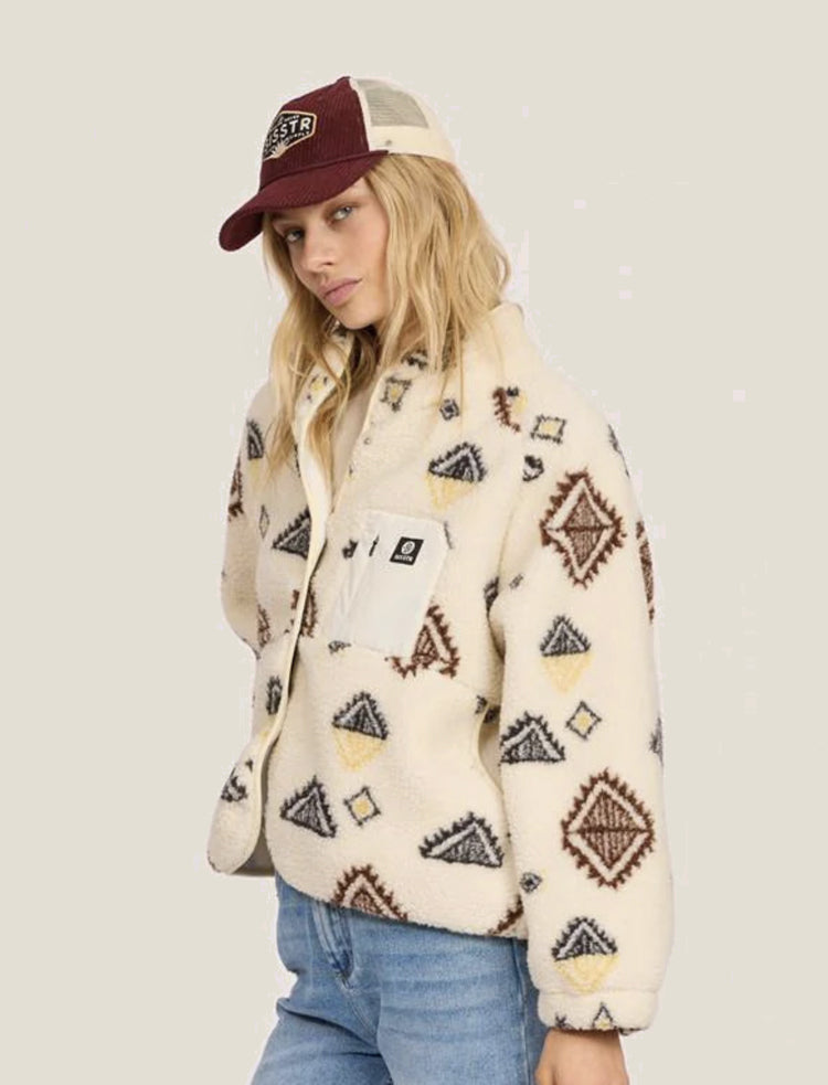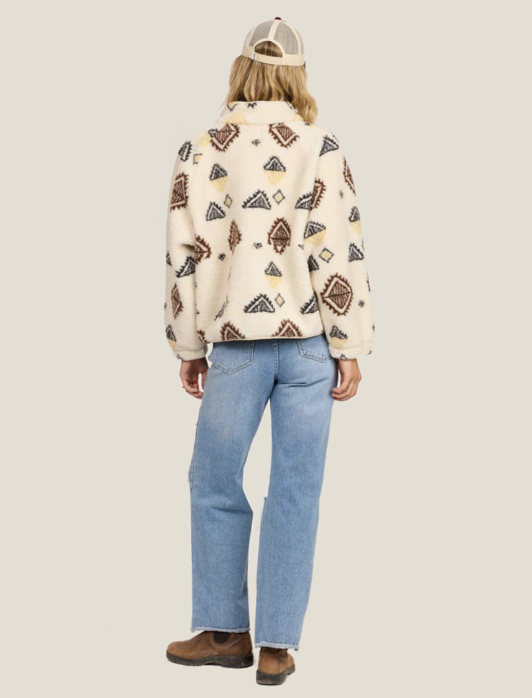 The SISSTR Live sherpa fleece - BMK is a cozy fleece features raglan sleeves and a snap-button front. It includes a nylon zip pocket on the left chest and handy side seam pockets for your essentials.