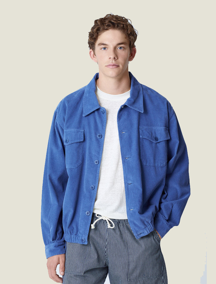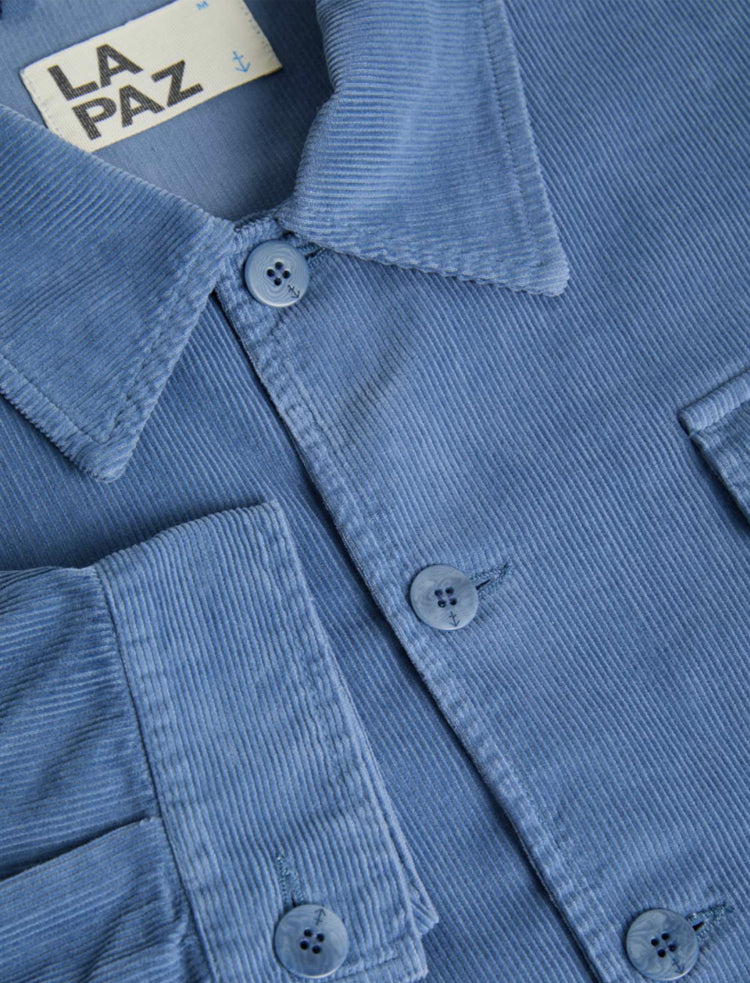 Introduced by LAPAZ last Spring/Summer, the Silva overshirt in baby corduroy is inspired by 1950s Italian worker styles, featuring a boxy fit, elasticized hem, and two buttoned breast pockets. All garments are pre-washed to minimize shrinkage.